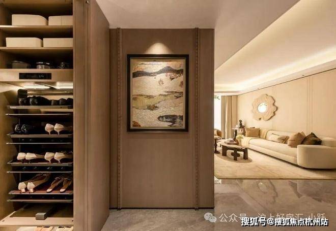 同时,玄关处也标配800库收纳系统,从鞋帽衣物到出行物件,皆能分类妥善收纳。