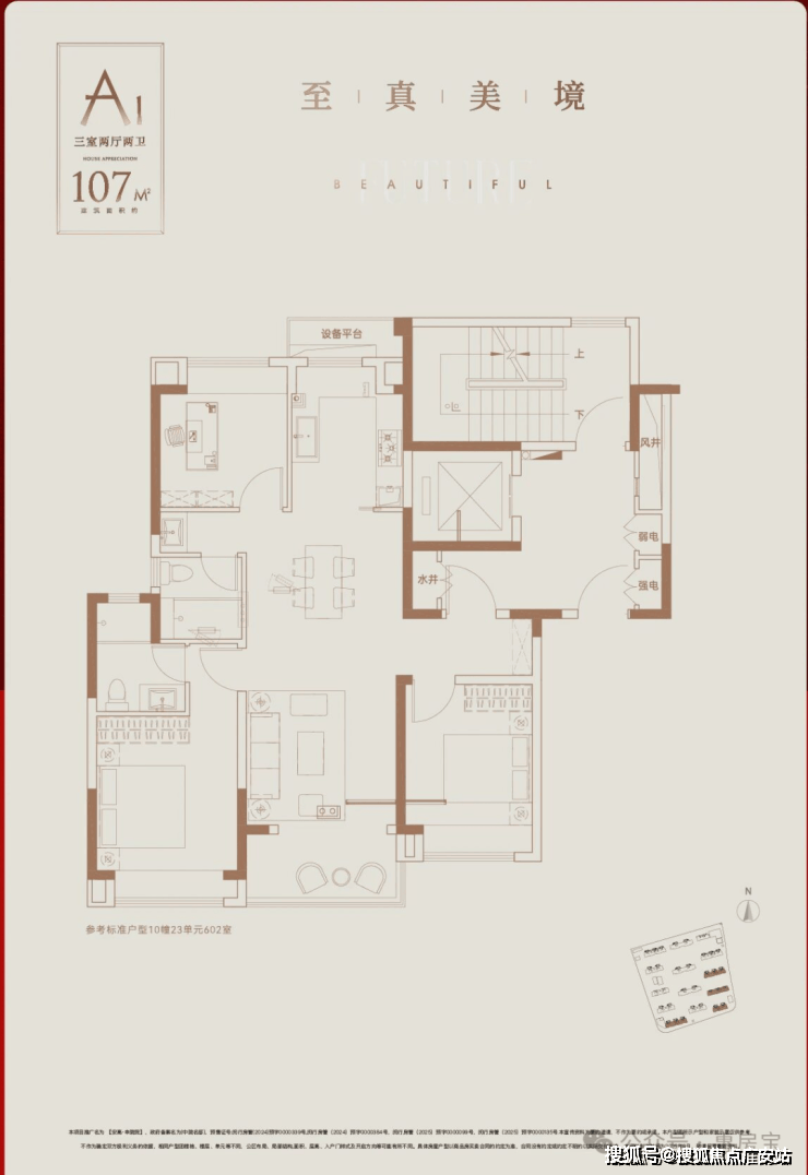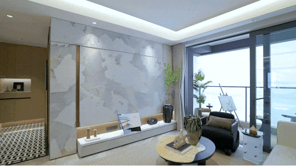 电视背景墙采用岩板交付,纹理自然,质感高级,彰显出主人独特的品味与格调。每一处装饰细节都经过精心考量,力求为业主打造一个既美观又实用的居住空间。还有建面约107㎡3房实景样板房同步公开,实现小面积里的“大满足”。整体面宽约9.8米,南北通透,所有卧室以及厨房都有飘窗设计,各个功能区域划分合理,动静分区明确,既保证了居住的舒适性,又满足了家庭成员不同的生活需求。