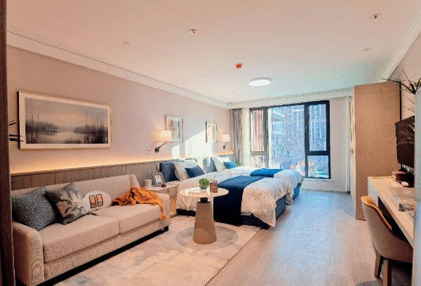 设施配置兼顾适老细节、个性化与功能性,对各类长者极为友好。居住空间细节拉满,入户门双猫眼适配轮椅使用者,家具为适老化定制款且可个性化布置,圆弧设计、无高差过道、防滑地板全方位保障安全,多点位紧急呼叫系统实现24小时呵护。公共空间功能多元,文化活动中心涵盖影音室、衣品工坊、新华书屋等,满足文娱社交需求;智能健管中心、营养膳食中心各司其职,搭配短期体验公寓,适配长住、旅居等多元场景。